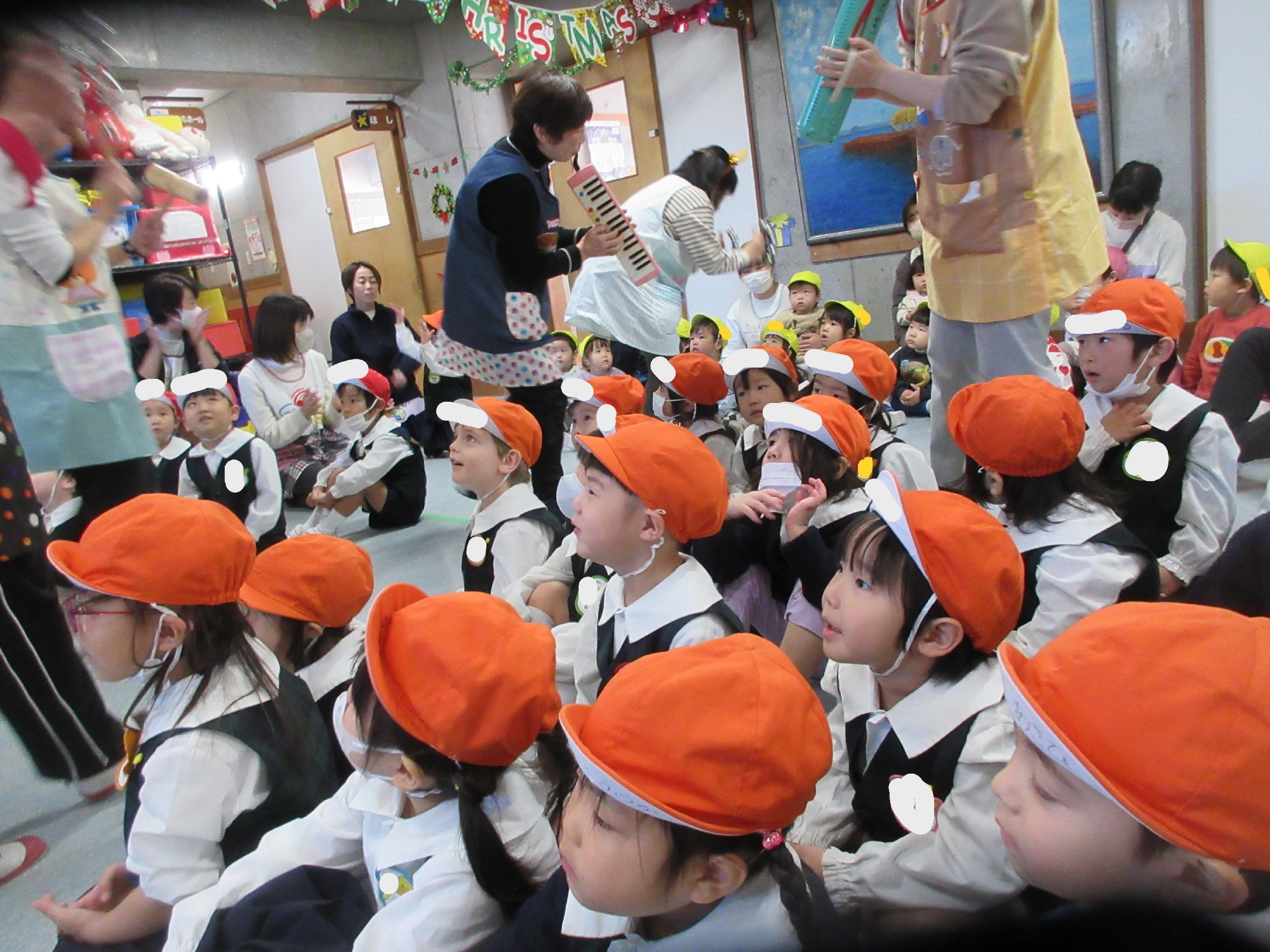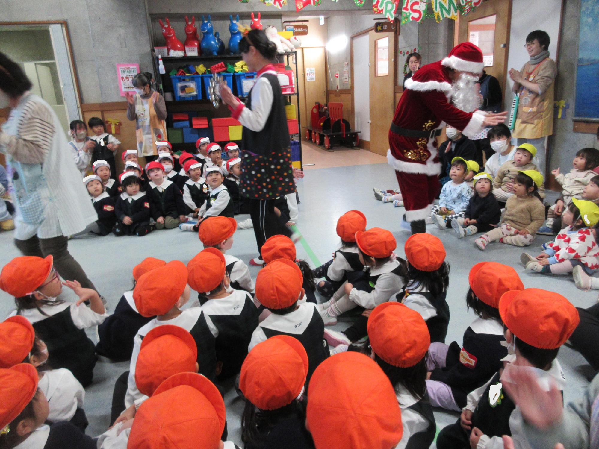 職員から「赤鼻のトナカイ」のほか、お子さまたちからも歌のプレゼントをサンタさんにしました😊