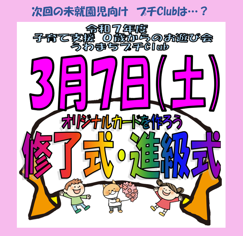 【3/7(土)10時~】お遊び会プチClubのお知らせ