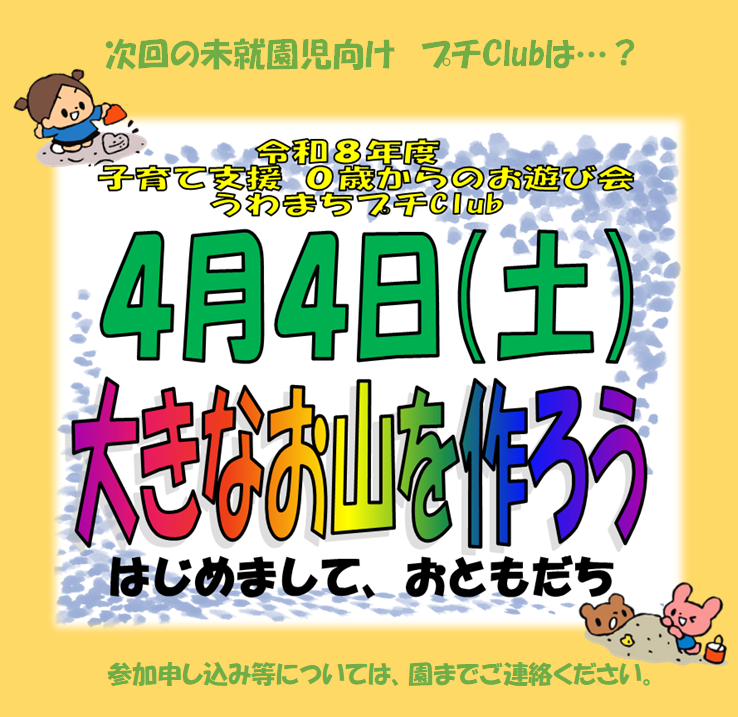 【4/4(土)10時~】お遊び会プチClubのお知らせ
