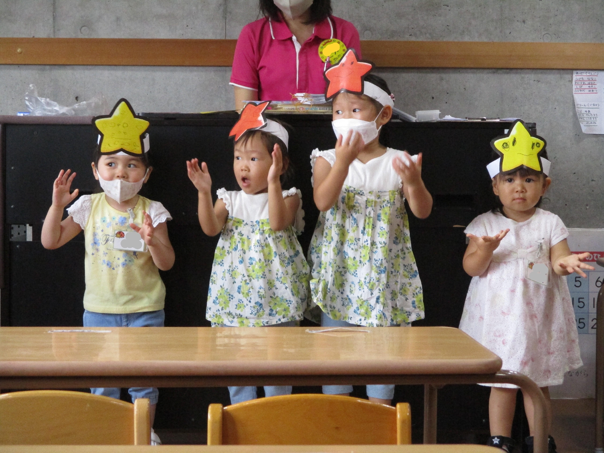 ぷちクラブより少人数の落ち着いた雰囲気の中で、先生のお話を聞いたり、お返事をしたり、園での基本的な生活習慣にふれることができます。